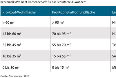 Unser ambitioniertes Wohnraumziel liegt bei maximal 30m2 im Schnitt/Person (incl. Gemeinschaftsflächen) (Bild: Flächen-Benchmarks, BBSR-Band). Statt 48m2 heute. Wir wollen zeigen, dass es mit einer Art konzertierten Aktion vieler Bausteine klappen kann. Mit die wichtigsten Elemente dafür sind:
