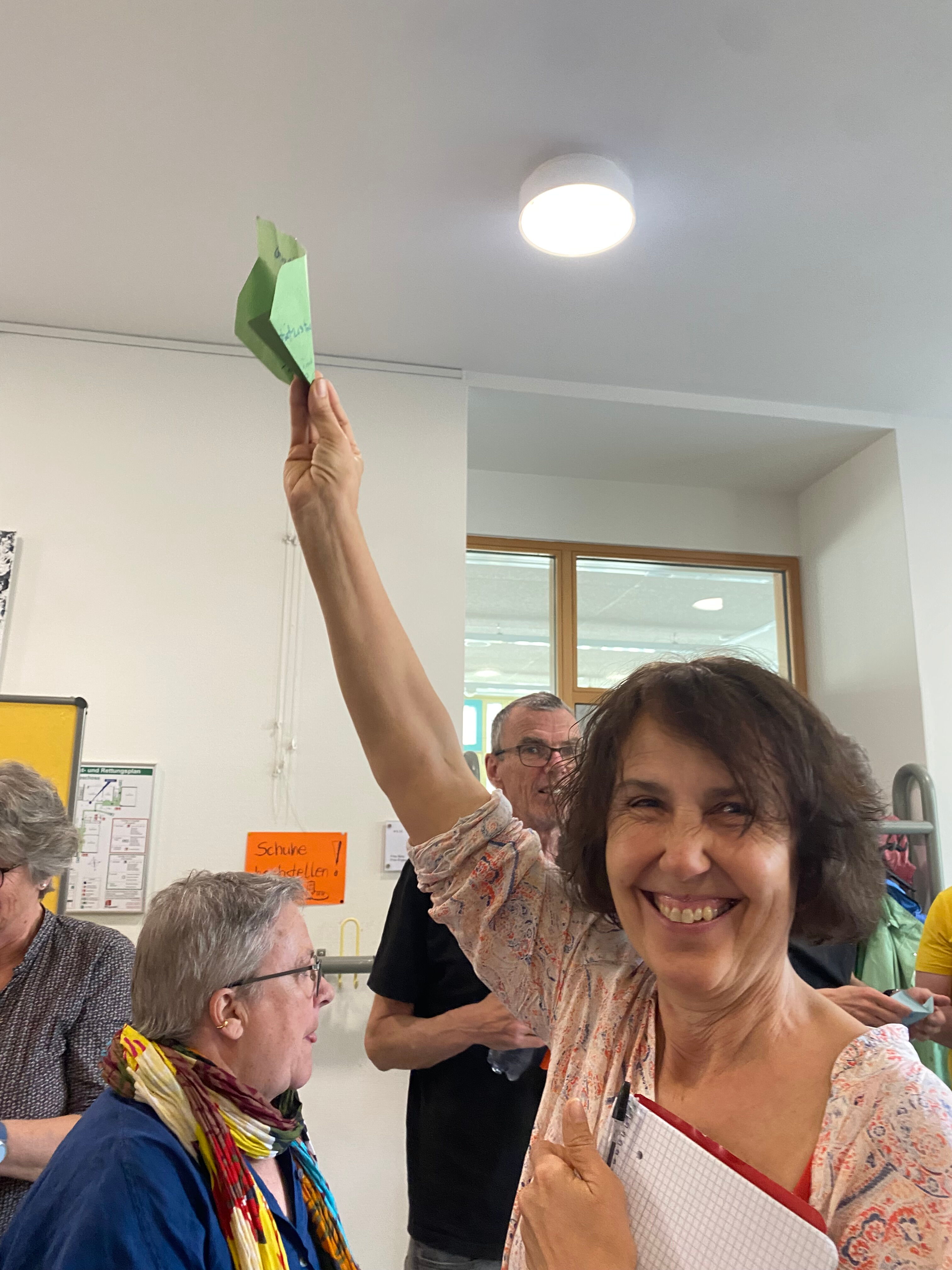 Ganz schön viel. Damit es trotz der Fülle zu einem lebendigen Austausch kommt, hat sich das Moderator*innen-Team wieder jede Menge einfallen lassen: Von Nachbar*innen- bis Stockwerks-Gesprächen, Wünsche-Flieger, eine Fishbowl-Diskussion bei der beispielhaft die Blickwinkel der Stadt Tübingen, der Finanzexpertin, einer Genossin mit Wohnwunsch und einem Vertreter der Neustart Schweiz-Idee eingebracht wurden, mit freien Stühlen für Personen, die weitere Positionen einbringen wollten.