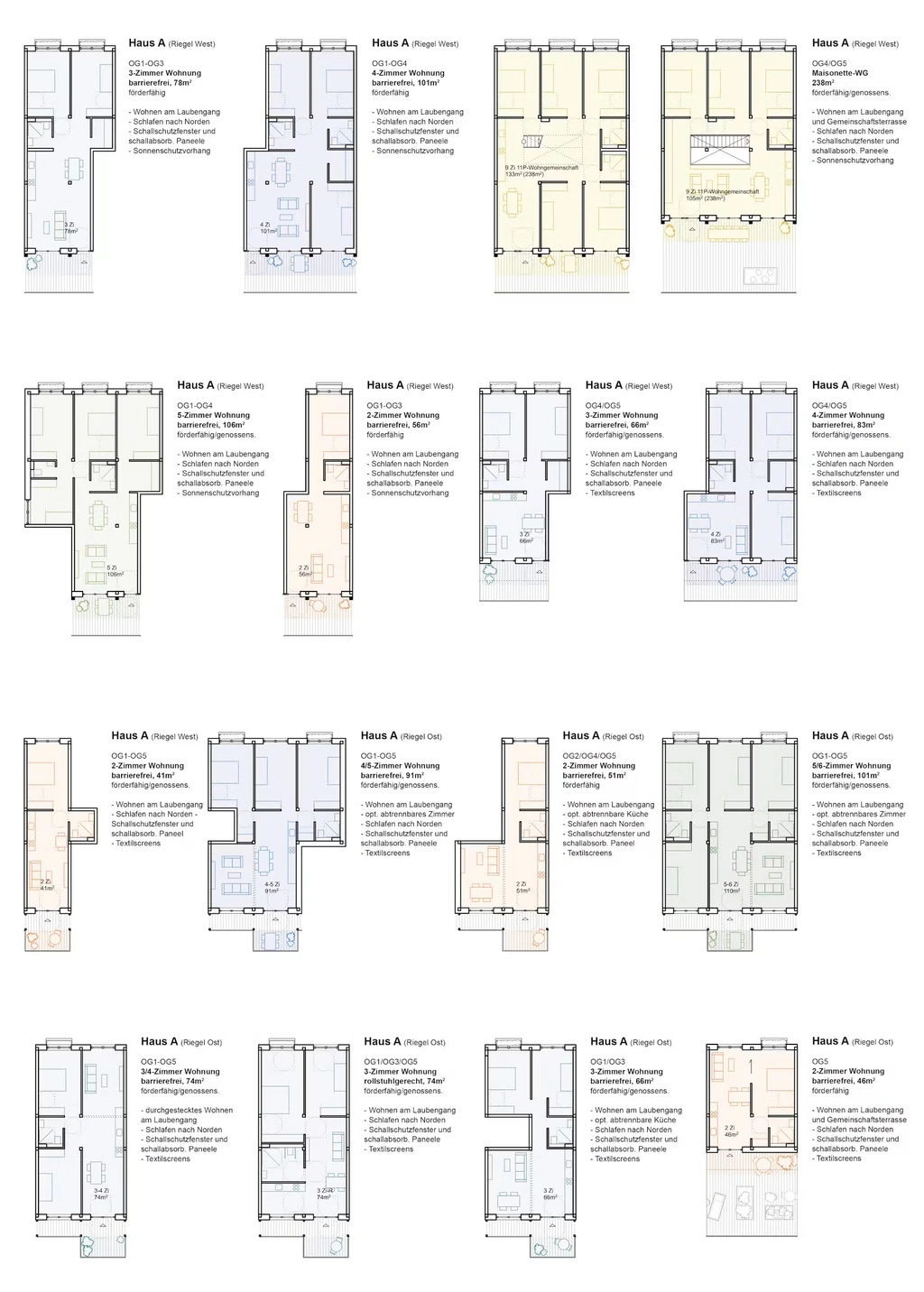 beispielhafte Wohnungstypologien im Riegelgebäude A von Neustart: solidarische leben w+ wohnen eG (Stand 07/2025)