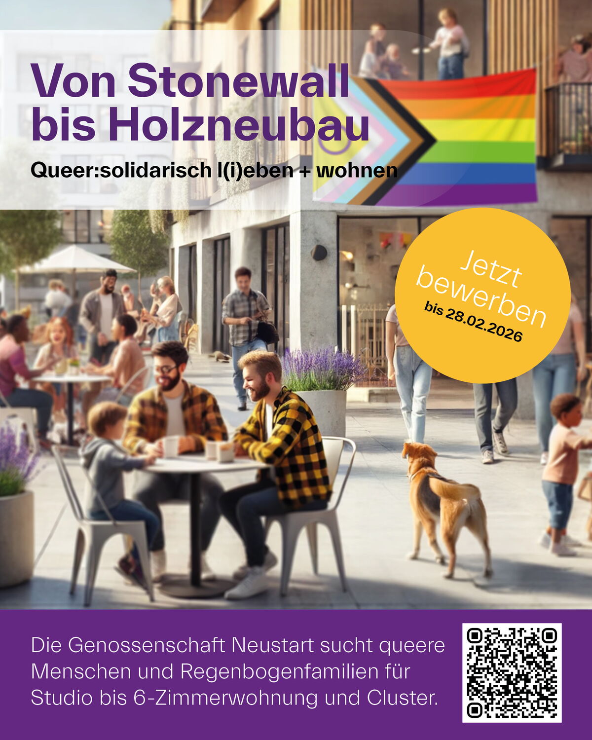 Die Wohnungsvergabe bei Neustart erfolgt in mehreren Runden. Die erste genossenschaftsinterne Runde wurde im April 2025 abgeschossen und die ersten 120 künftigen Bewohner:innen in 75 Haushalten und Wohnungen stehen fest und gestalten die Genossenschaft aktiv mit. Die zweite Wohnungsvergaberunde von Neustart zur Vergabe weiterer circa 50 Wohnungen an circa 120 Personen ist öffentlich. Sie hat am 1.11.2025 begonnen und endet am 28.02.2026. Die dritte öffentliche Wohnungsvergaberunde findet voraussichtlich im Herbst 2026 statt. Die Wohnungen für soziale Träger werden separat vergeben. Nach der Erstvergabe werden einzelne frei werdende Wohnungen nachvermietet.